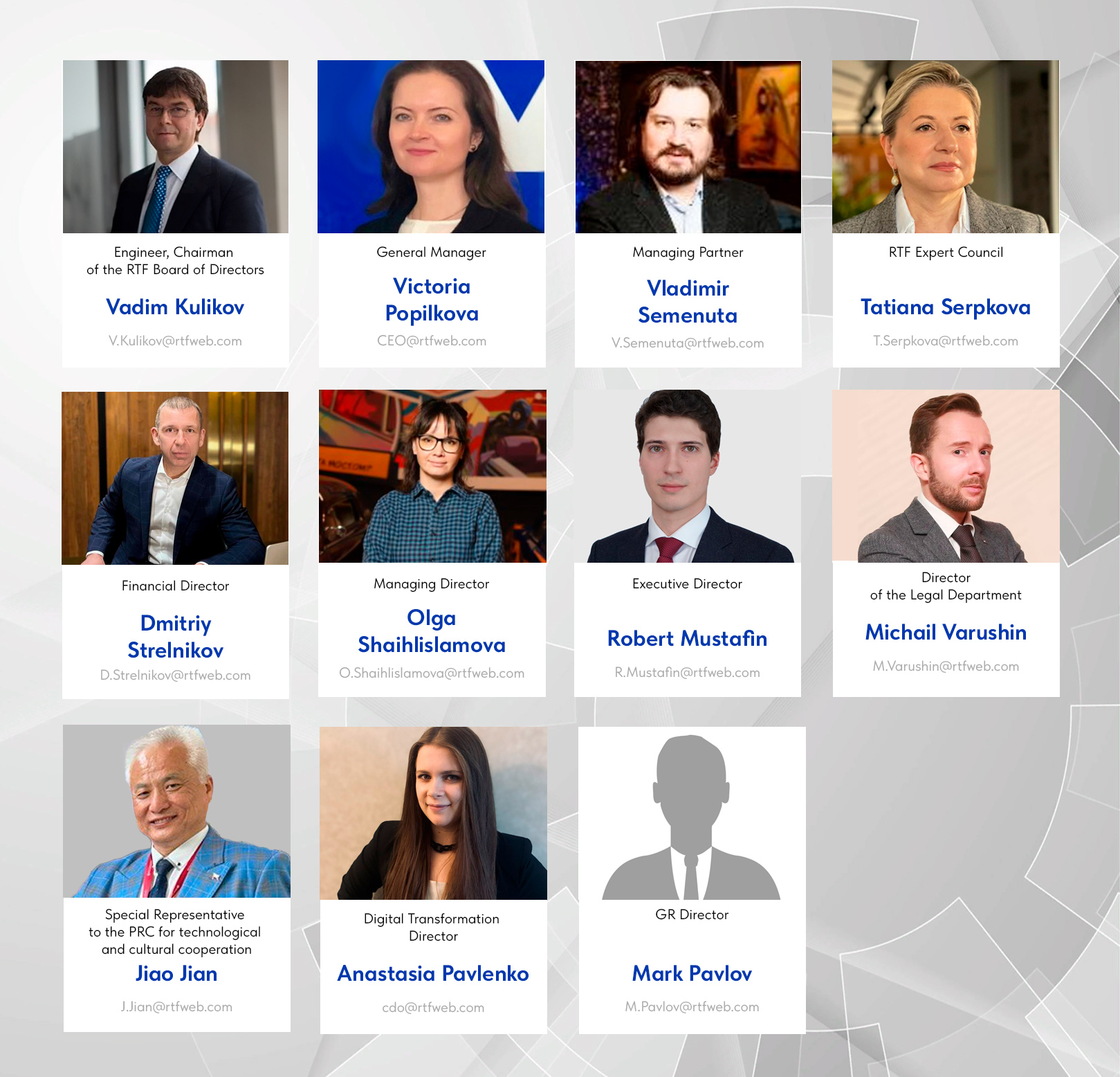 关于 俄罗斯技术基金(RTF)是根据俄罗斯联邦政府的目标创建的,旨在形成用于长期(至少5年)参与快速增长的技术公司在已建立的公司、工程公司和国家和国际重大基础设施项目的实施中的非预算、项目为基础、中间融资工具,以推动技术和数字发展。 我们通过选择和实施来自快速增长的技术公司的先进想法和现代知识,提高欧亚市场经济领导者的效率。我们的目标是通过促进其技术进步、发展工程能力和实施尖端世界级技术,提高合作伙伴的竞争力。该基金由一支具有相关行业和投资能力的专业团队管理,旨在寻找、选择和实施最经济有效和技术上合理的技术和数字解决方案。在SPIEF'22框架内,工程师Vadim Kulikov被任命为监事会(董事会)主席。 |